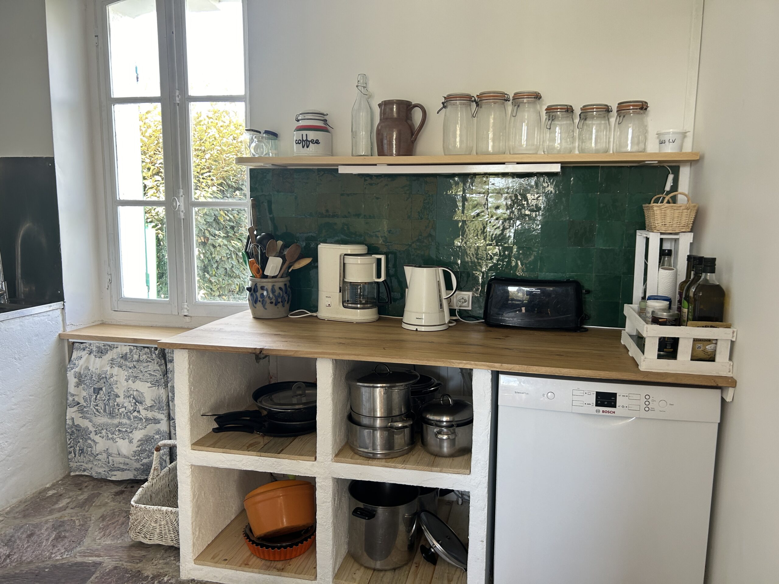 Du micro-onde au batteur à oeuf en passant par le couteau à huître. Vous pourrez cuisiner à l’aise, faire des apéros sur le pouce grâce au bar ouvert sur la salle à manger.