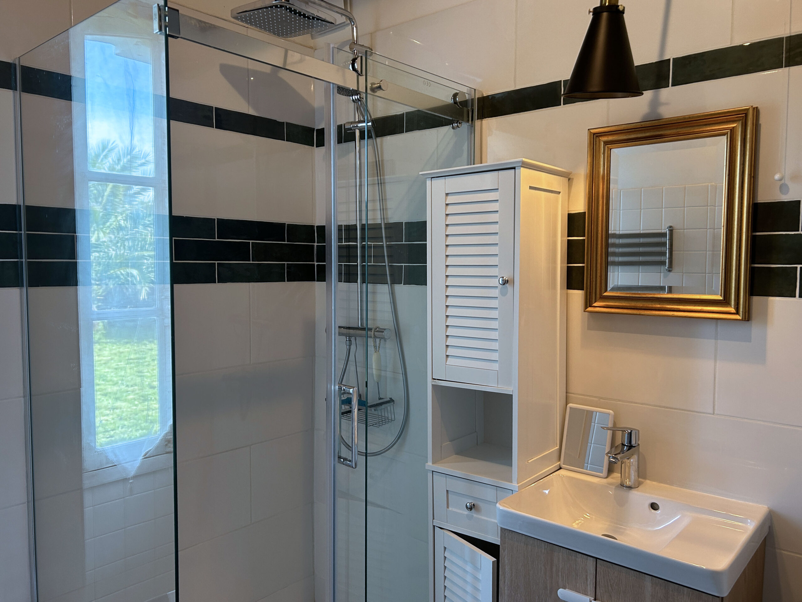 Matin ou soir, détente pour les plagistes et les sportives dans une douche aux dimensions agréables. Un WC séparé est attenant à la salle d’eau.